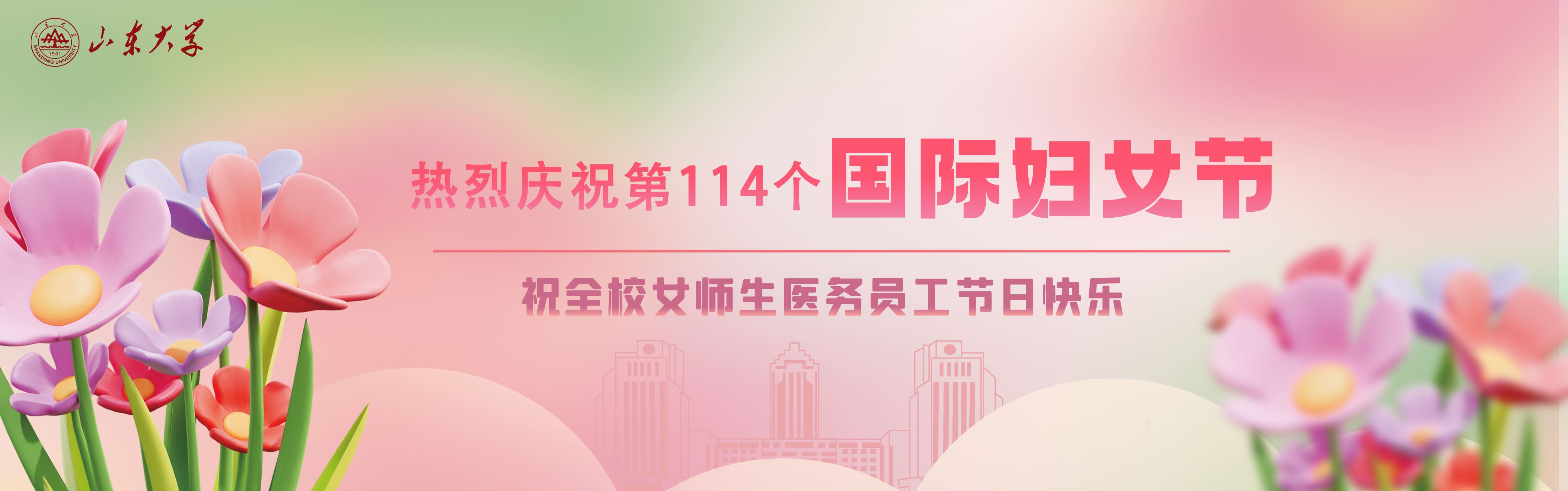 热烈庆祝第114个国际妇女节 祝全校女师生医务员工节日快乐设计:杨文静供图:宣传部